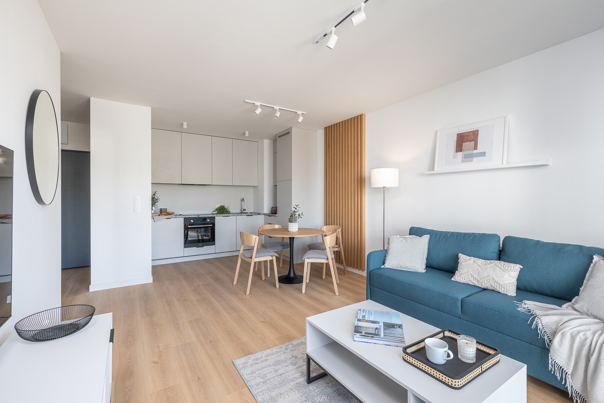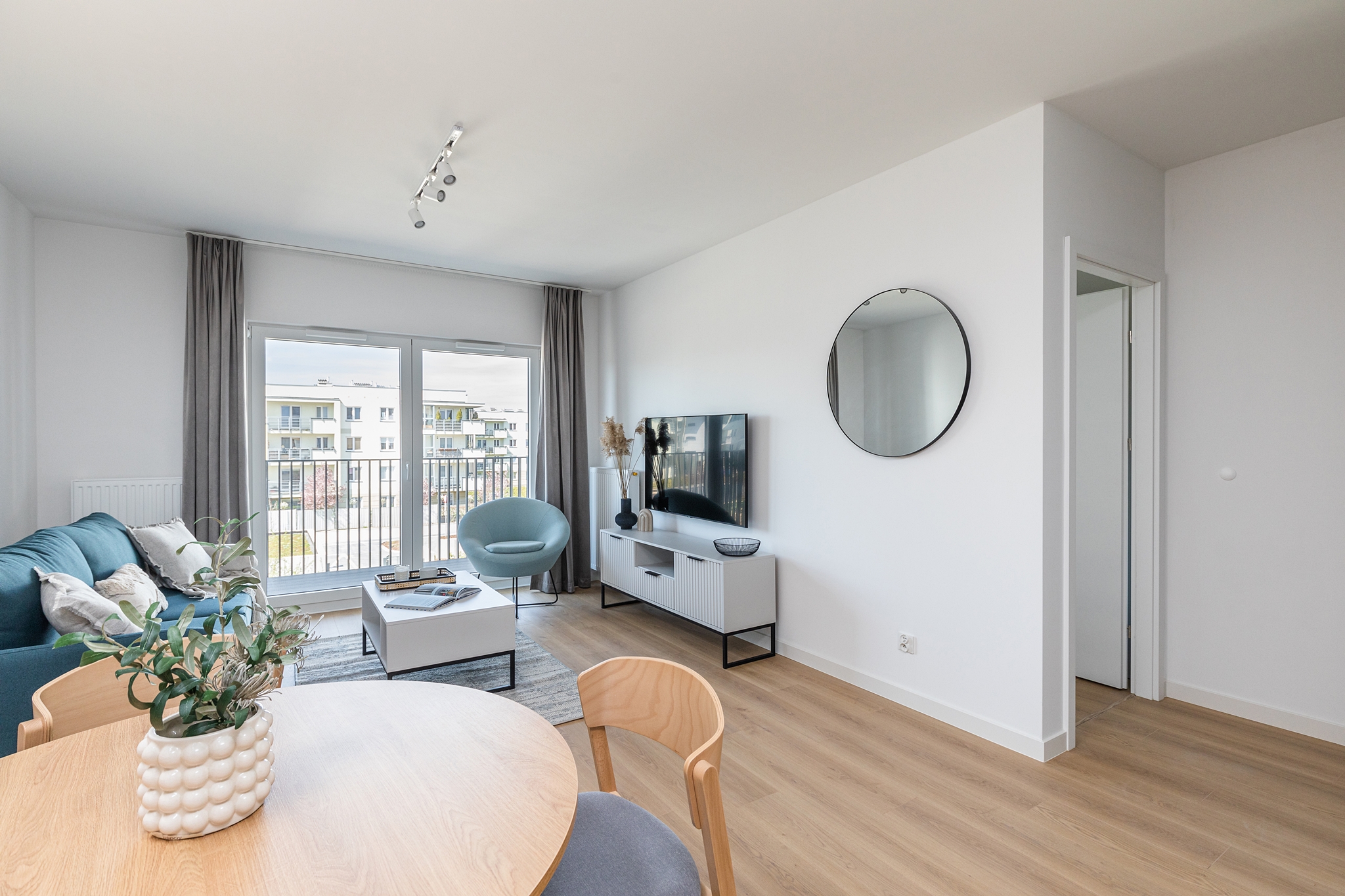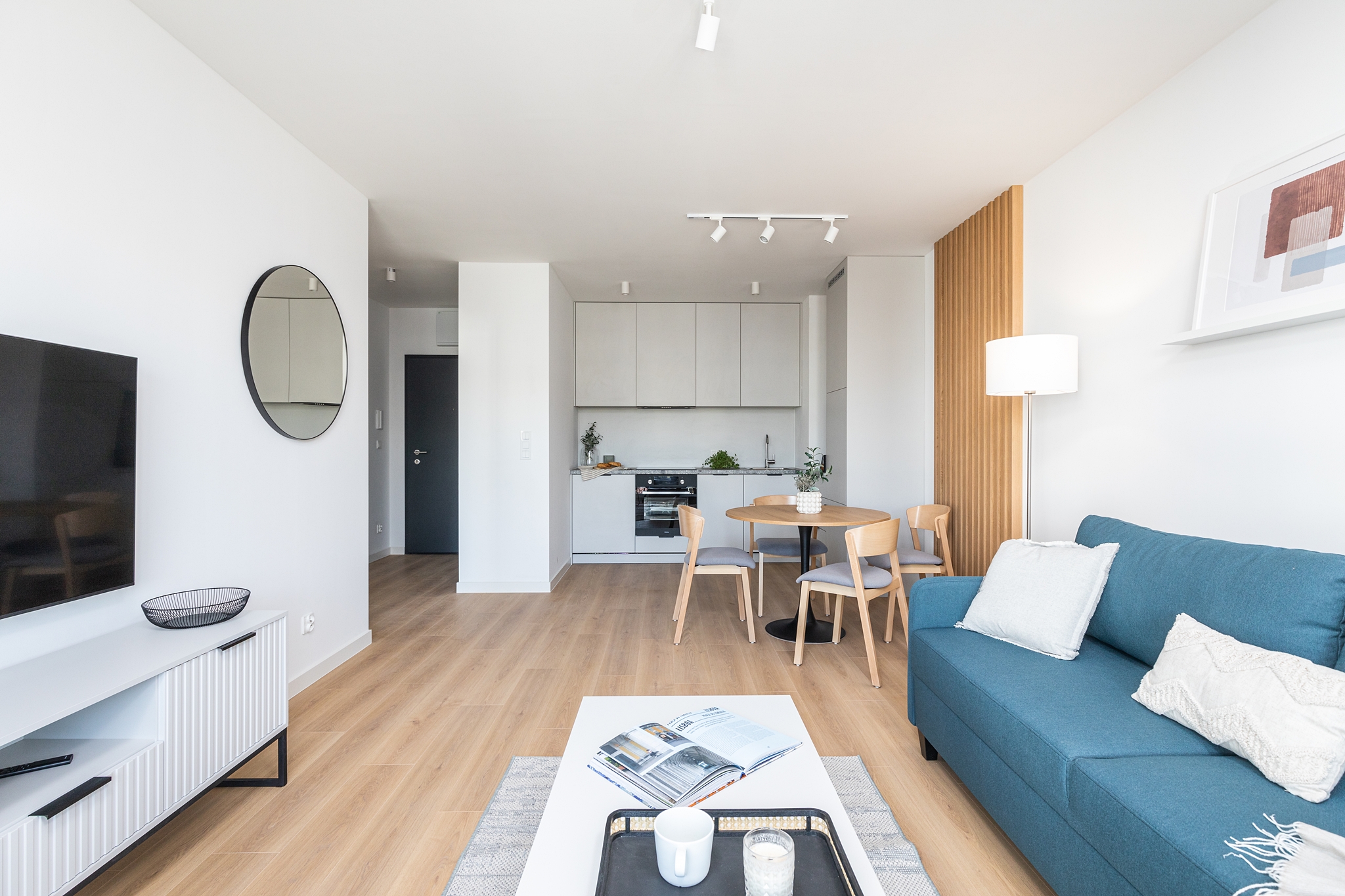 This one-bedroom apartment is an excellent choice for couples or those working remotely. The interior comprises a bright living room with a kitchenette, a separate bedroom, a bathroom, and a balcony, which provides additional space for relaxation. The apartment is equipped with modern appliances, a TV, and offers ample storage space. The bright colors and functional layout ensure comfort and convenience in everyday life.