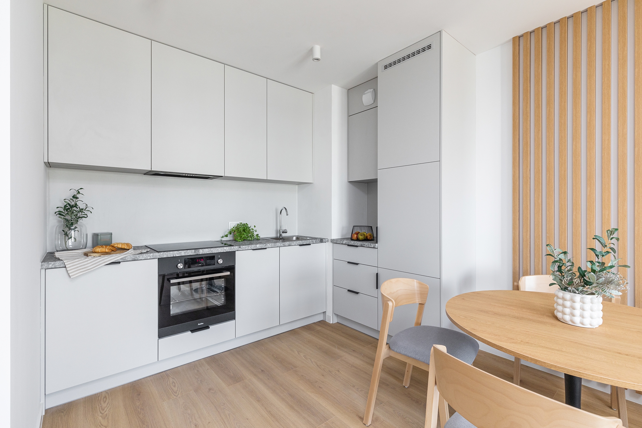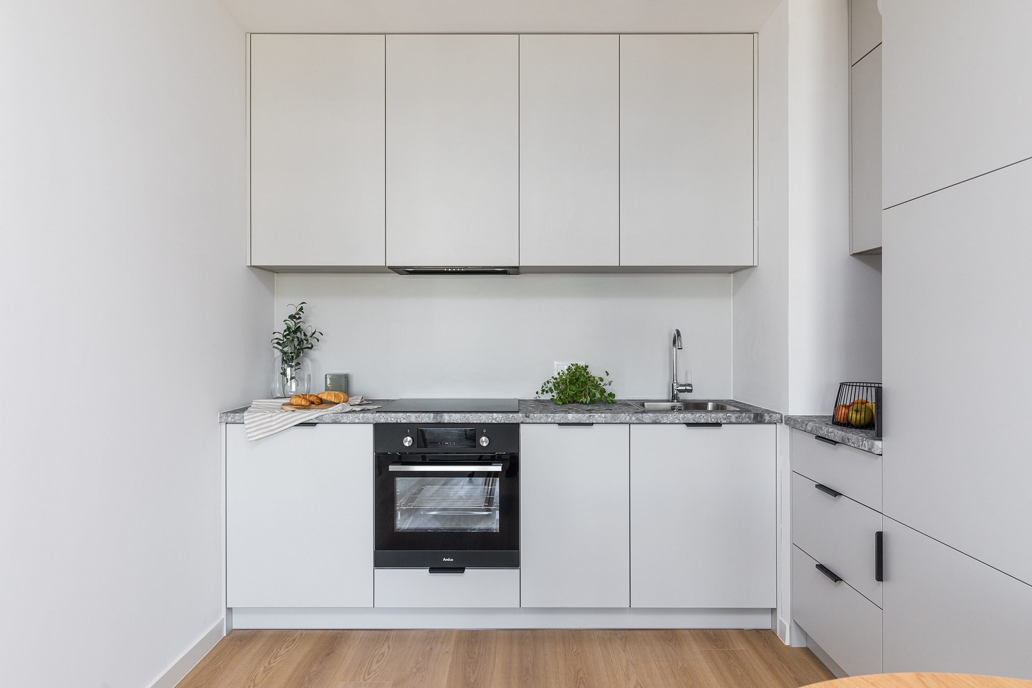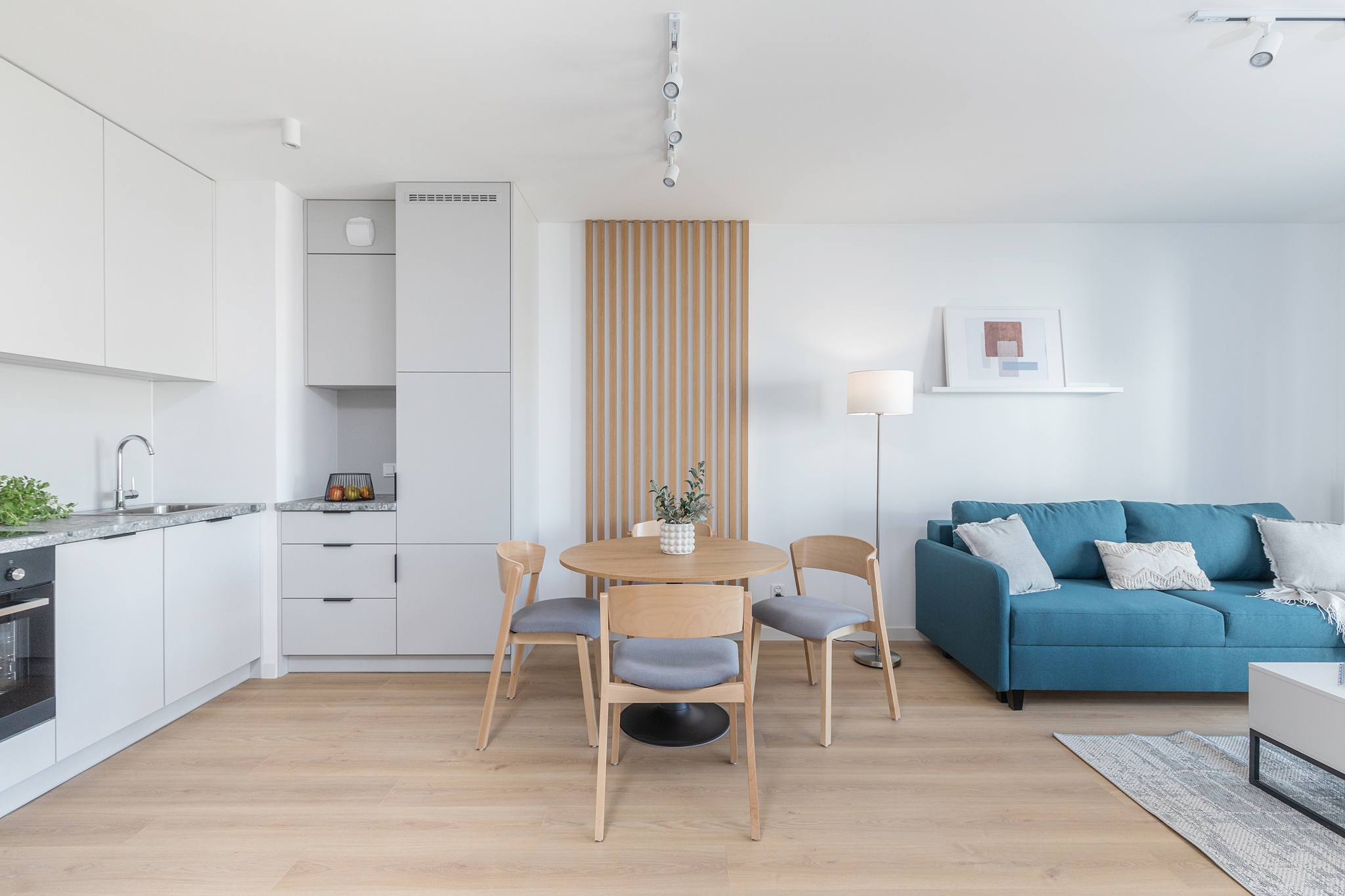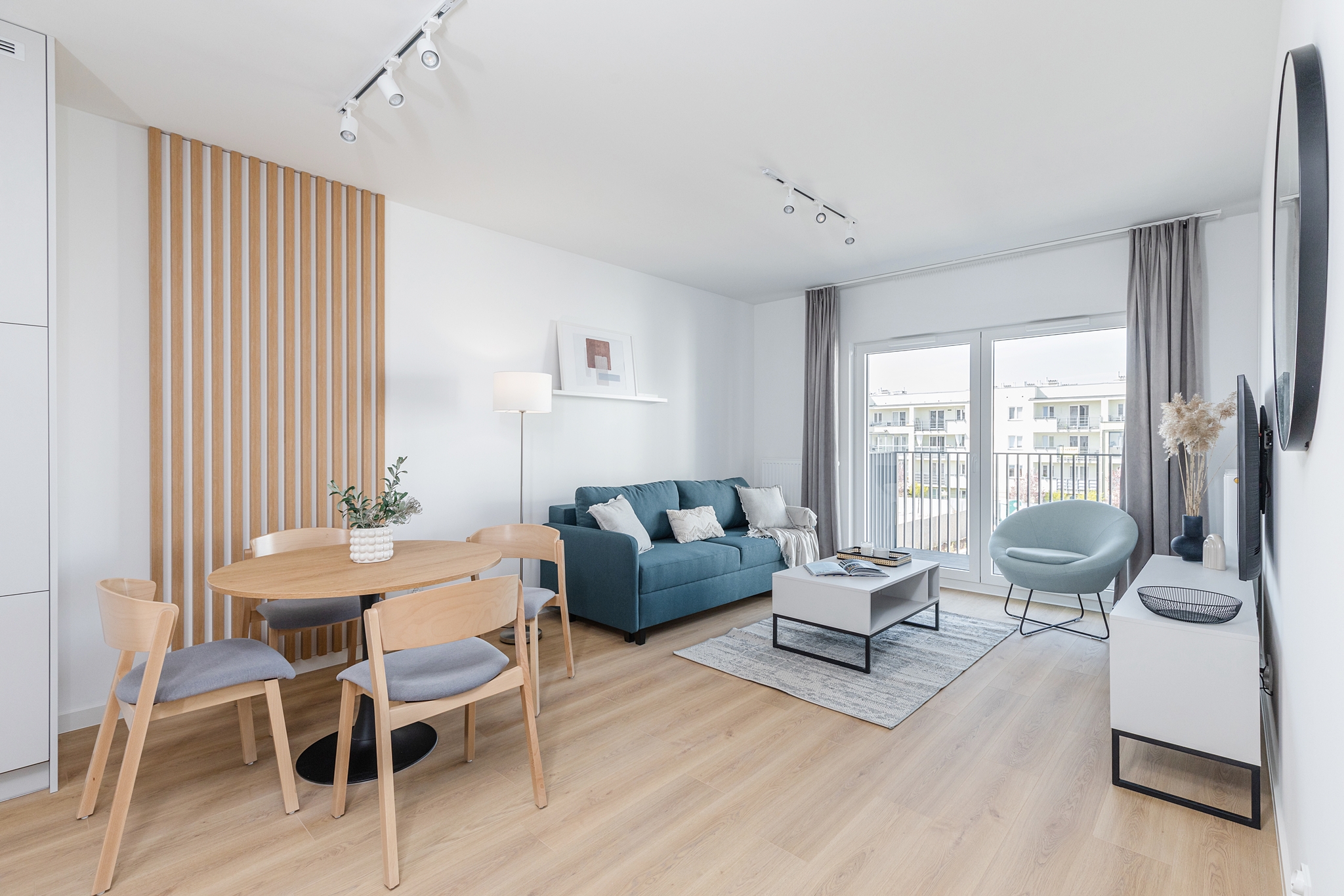 This one-bedroom apartment is an excellent choice for couples or those working remotely. The interior comprises a bright living room with a kitchenette, a separate bedroom, a bathroom, and a balcony, which provides additional space for relaxation. The apartment is equipped with modern appliances, a TV, and offers ample storage space. The bright colors and functional layout ensure comfort and convenience in everyday life.