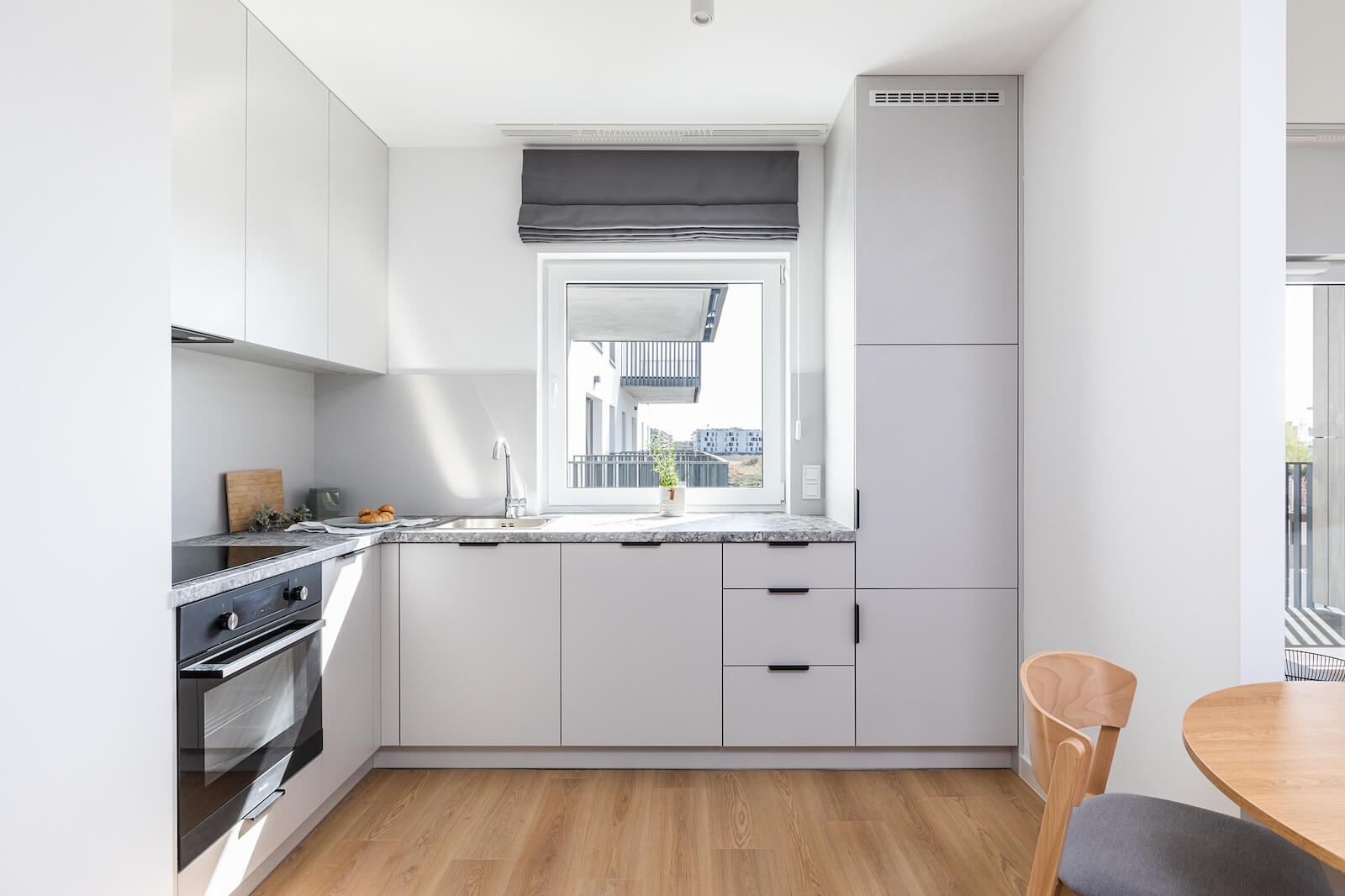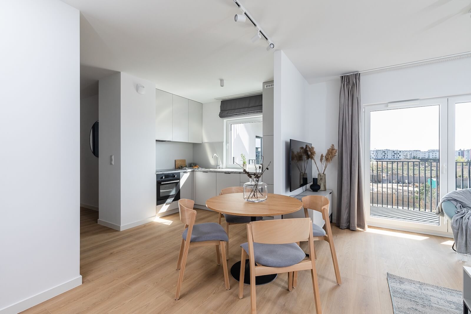 This three-room apartment 65 m2 is an excellent choice for couples and those working remotely. The interior features a bright living room with a kitchenette, a separate bedroom, a spare room, two bathrooms, and a spacious balcony, perfect for relaxing. The apartment is equipped with modern appliances and a TV, and offers ample storage space. The bright colors and functional layout ensure comfort and convenience in everyday use.