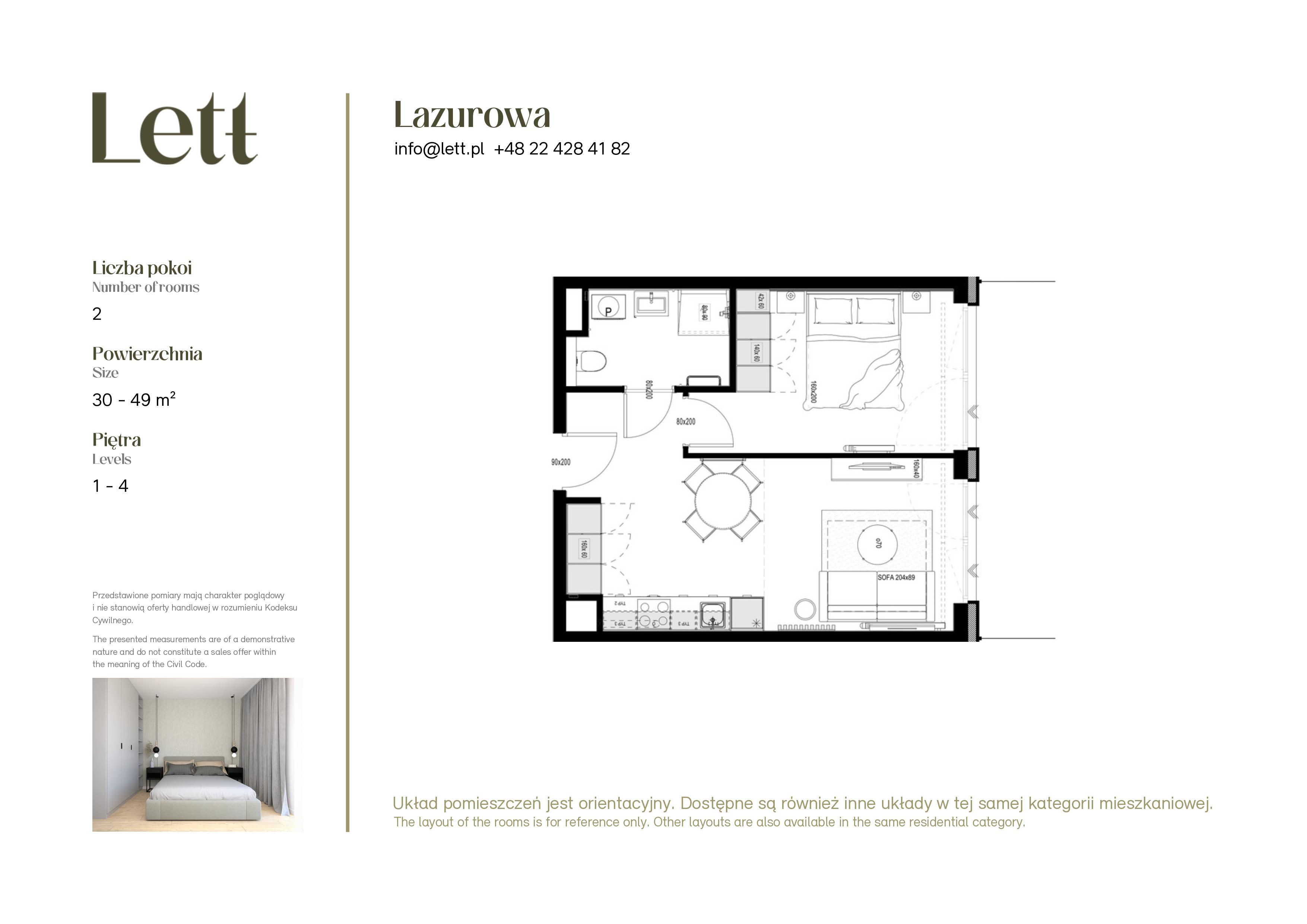 These apartments are part of the Lett Lazurowa development, located in one of the fastest-growing areas of Warsaw – Bemowo. At 15 Lazurowa Street, there are 104 modern apartments for rent, including functional studios, 2-, 3-, and 4-room units, as well as premium mezzanine apartments. All flats are fully furnished and ready to move in.