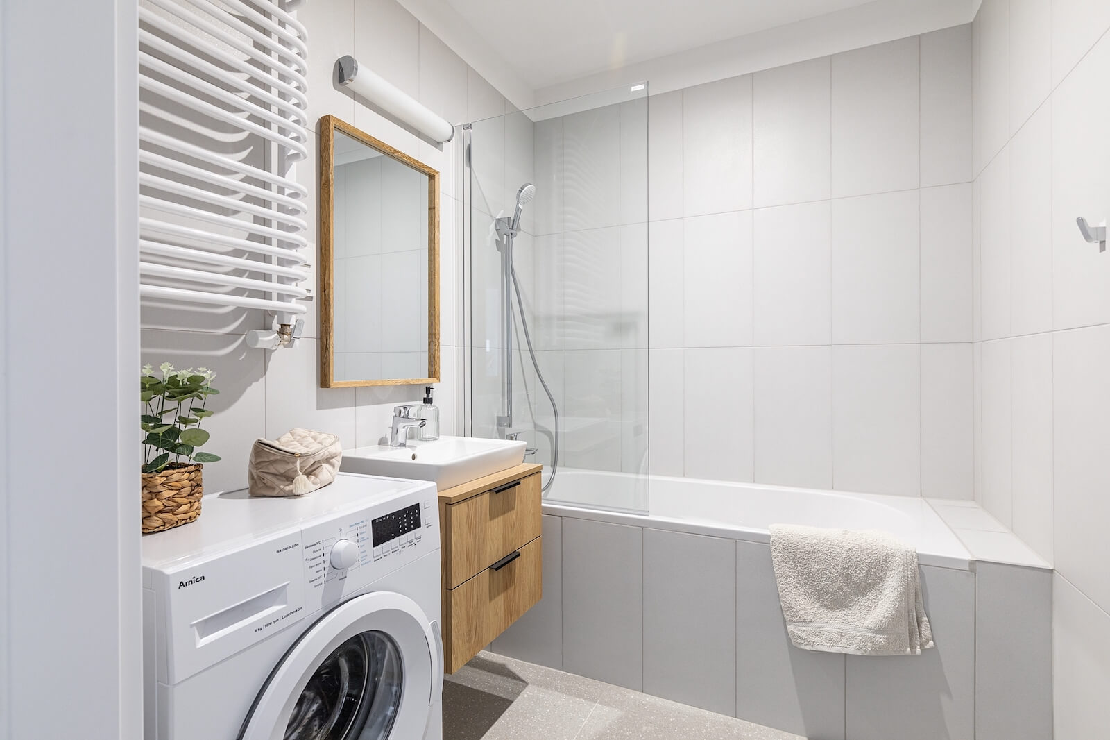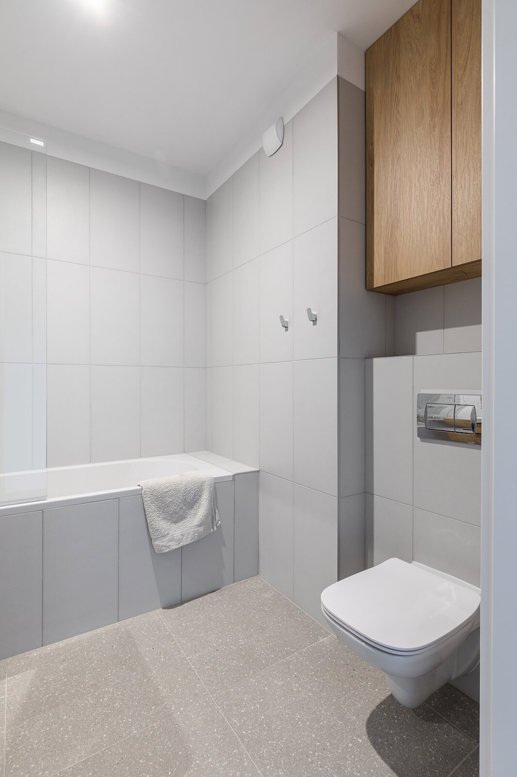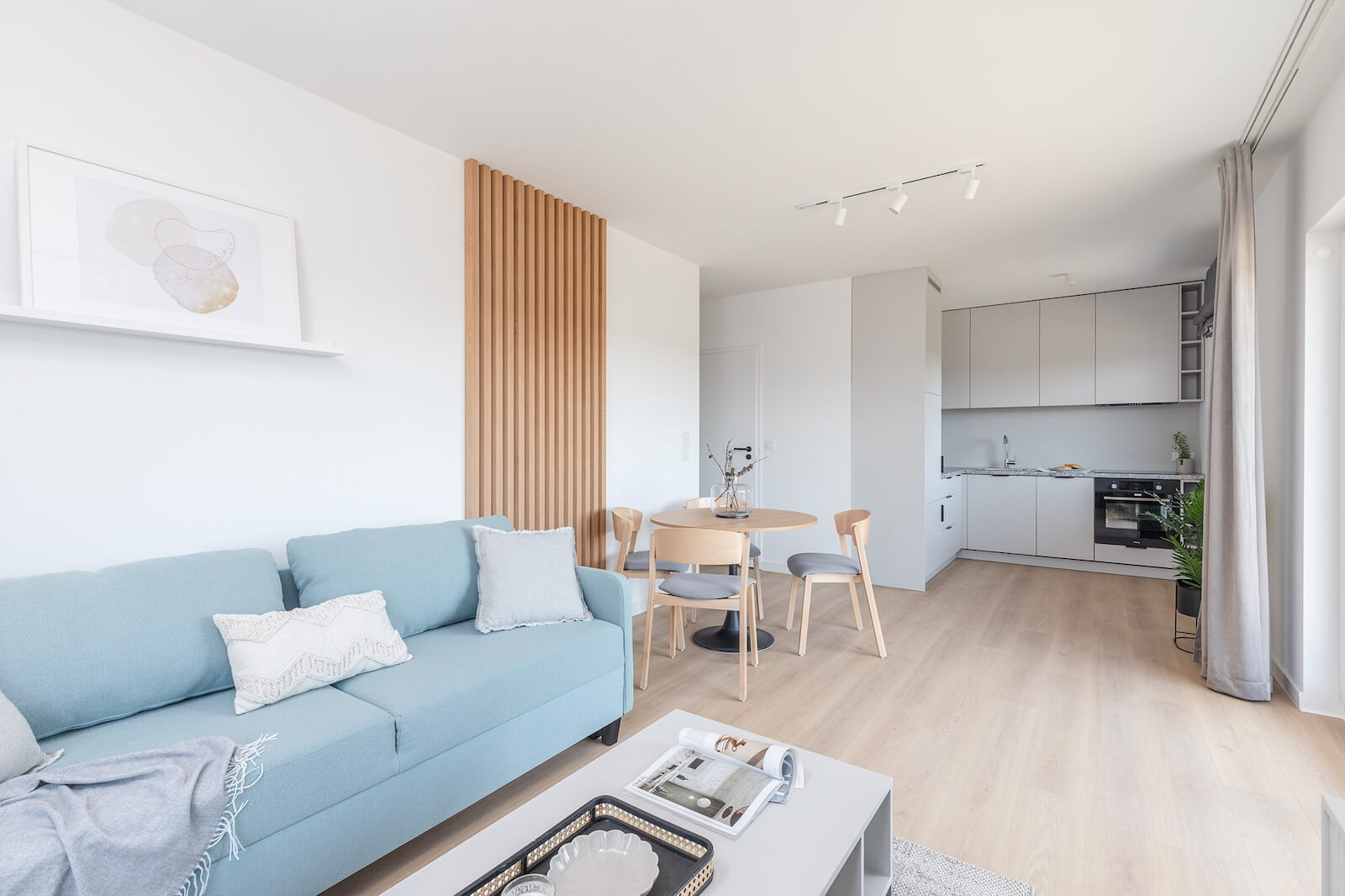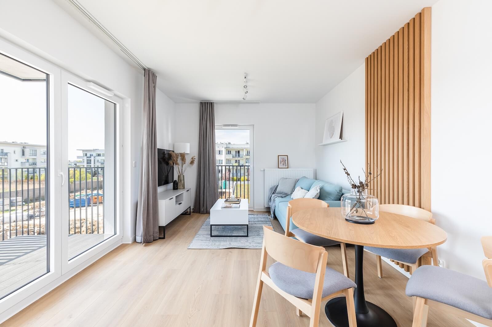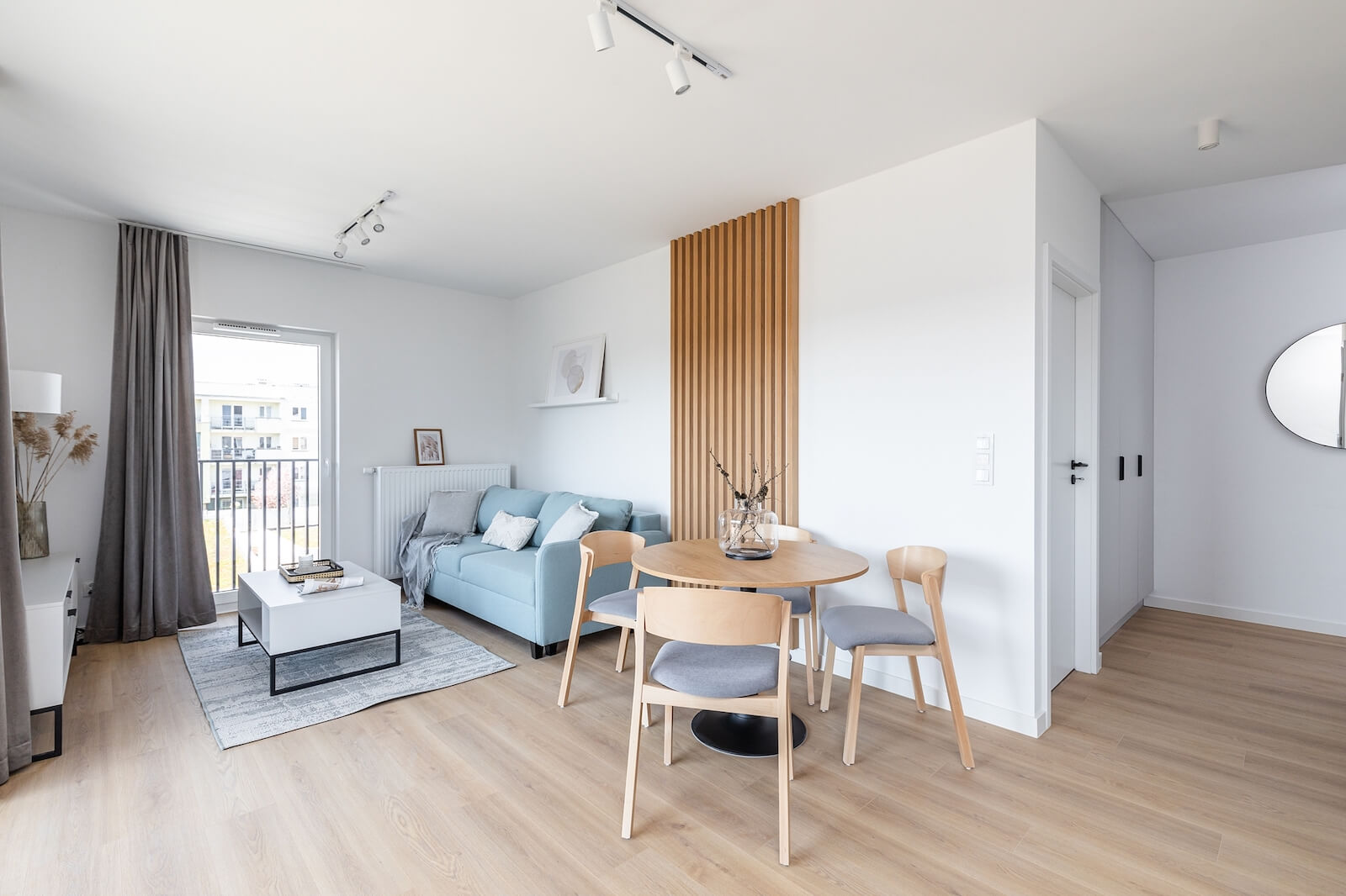 These apartments are part of the Lett Lazurowa development, located in one of the fastest-growing areas of Warsaw – Bemowo. At 15 Lazurowa Street, there are 104 modern apartments for rent, including functional studios, 2-, 3-, and 4-room units, as well as premium mezzanine apartments. All flats are fully furnished and ready to move in.