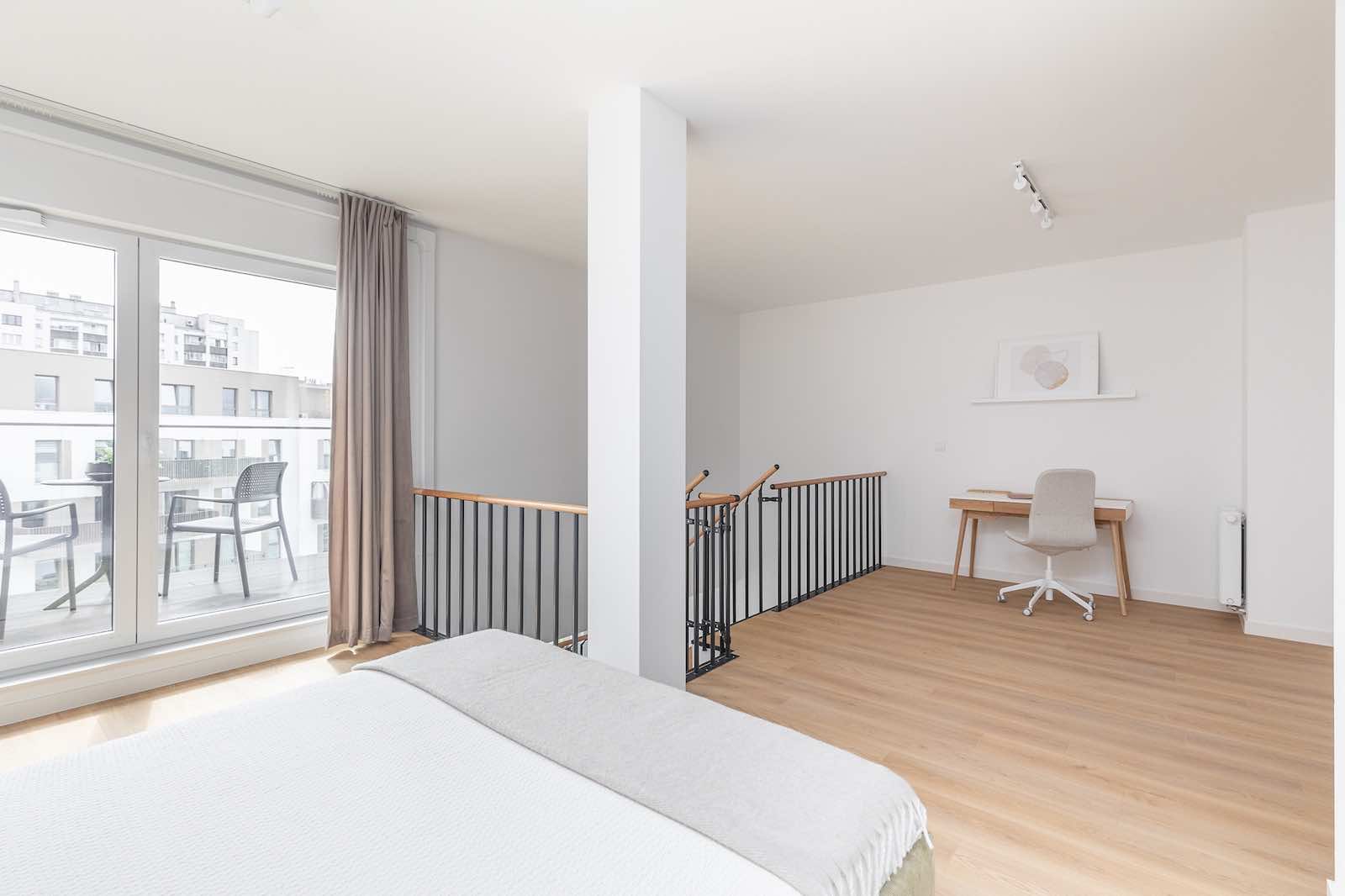 We offer for rent a functional, two-story, two-room apartment with a mezzanine, 57m², located on the top floor of a cozy, three-story building with an elevator on Lazurowa Street. The apartment has been decorated in a modern style, with attention to comfort and details. The property includes a spacious terrace, perfect for relaxing.