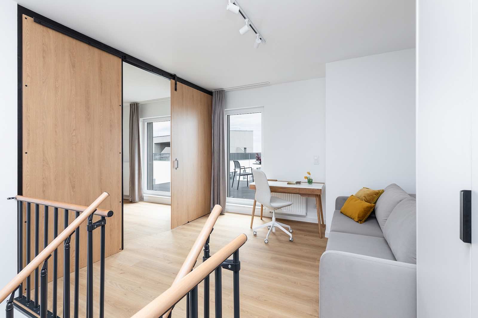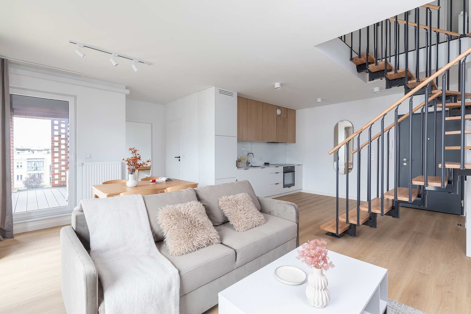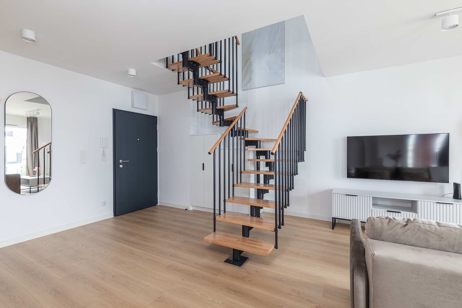 The PREMIUM mezzanine apartments are the most exclusive in the Lett Lazurowa building. With a high ceiling and an open mezzanine level, they offer unique space, light, and modern character. Ideal for design lovers or those seeking a standout home.