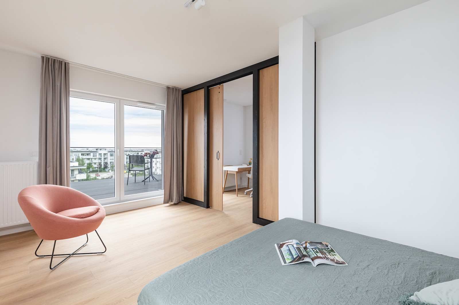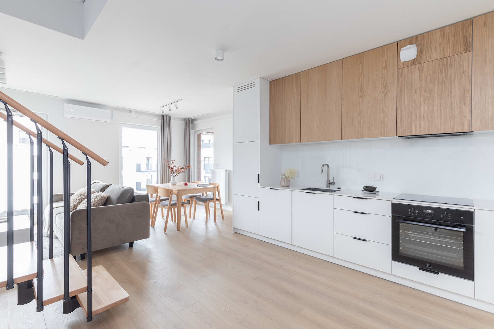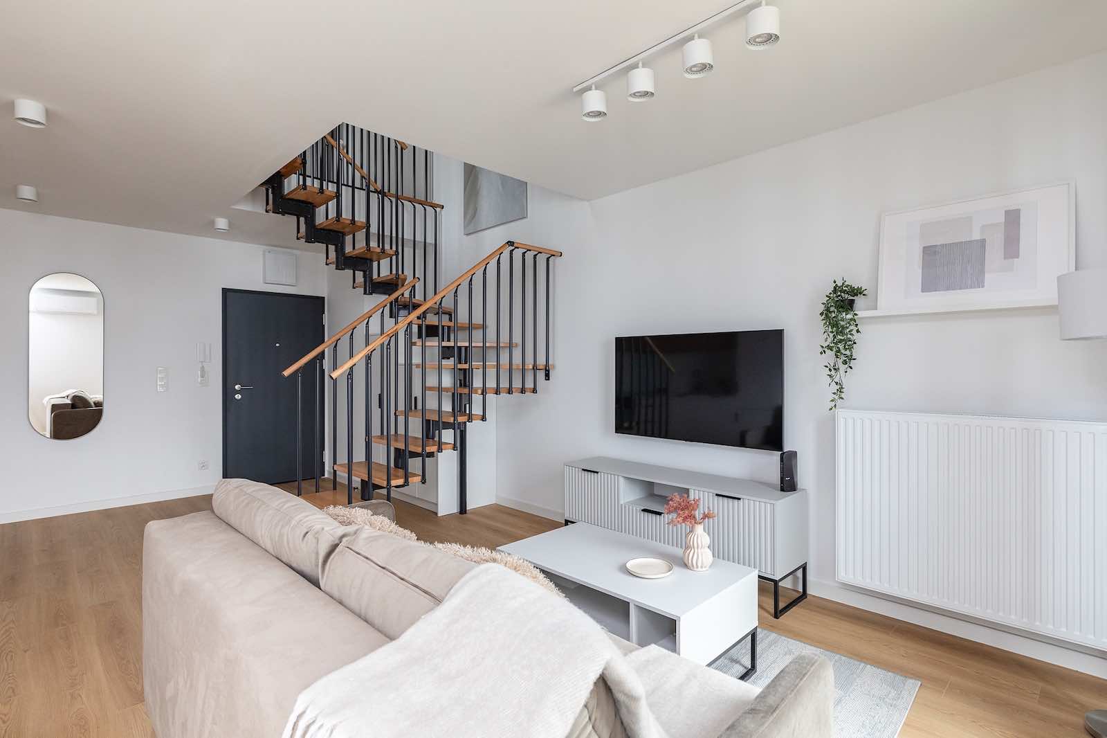 The PREMIUM mezzanine apartments are the most exclusive in the Lett Lazurowa building. With a high ceiling and an open mezzanine level, they offer unique space, light, and modern character. Ideal for design lovers or those seeking a standout home.