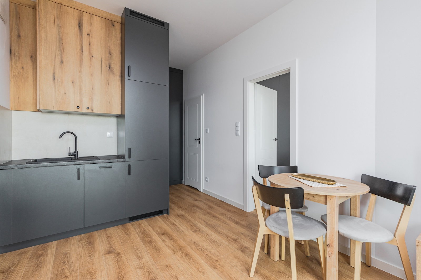 This apartment is located in the Lett Markowska development and offers a modern space to live – perfect for both short and long stays. At 5 Markowska Street, there are 179 fully furnished studios and one-bedroom apartments ready to move in.