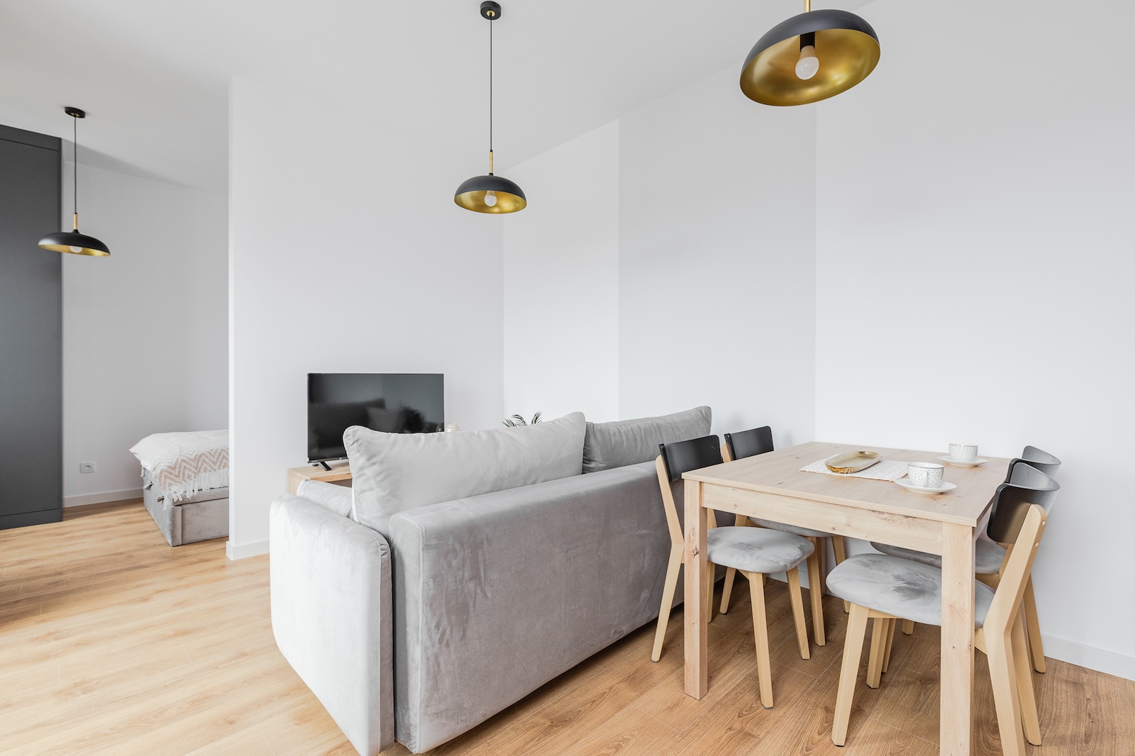 Studio apartments include various subtypes, adapted to various lifestyles and needs. Some of them have a separate bedroom behind a wooden wall, which ensures privacy. Others are equipped with fold-out sofas enabling their flexible use depending on the needs of residents.