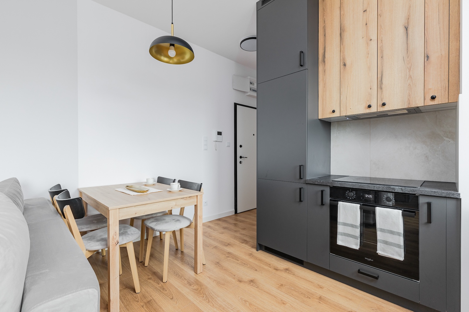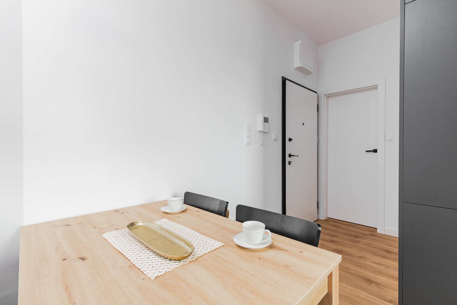 All apartments have been fully furnished using modern and functional solutions to make the best use of space. Each apartment is equipped with high-class household appliances and electronics.