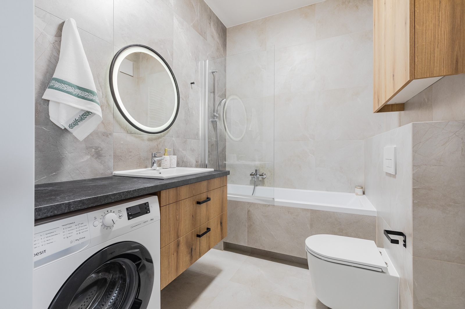 This apartment is located in the Lett Markowska development and offers a modern space to live – perfect for both short and long stays. At 5 Markowska Street, there are 179 fully furnished studios and one-bedroom apartments ready to move in.