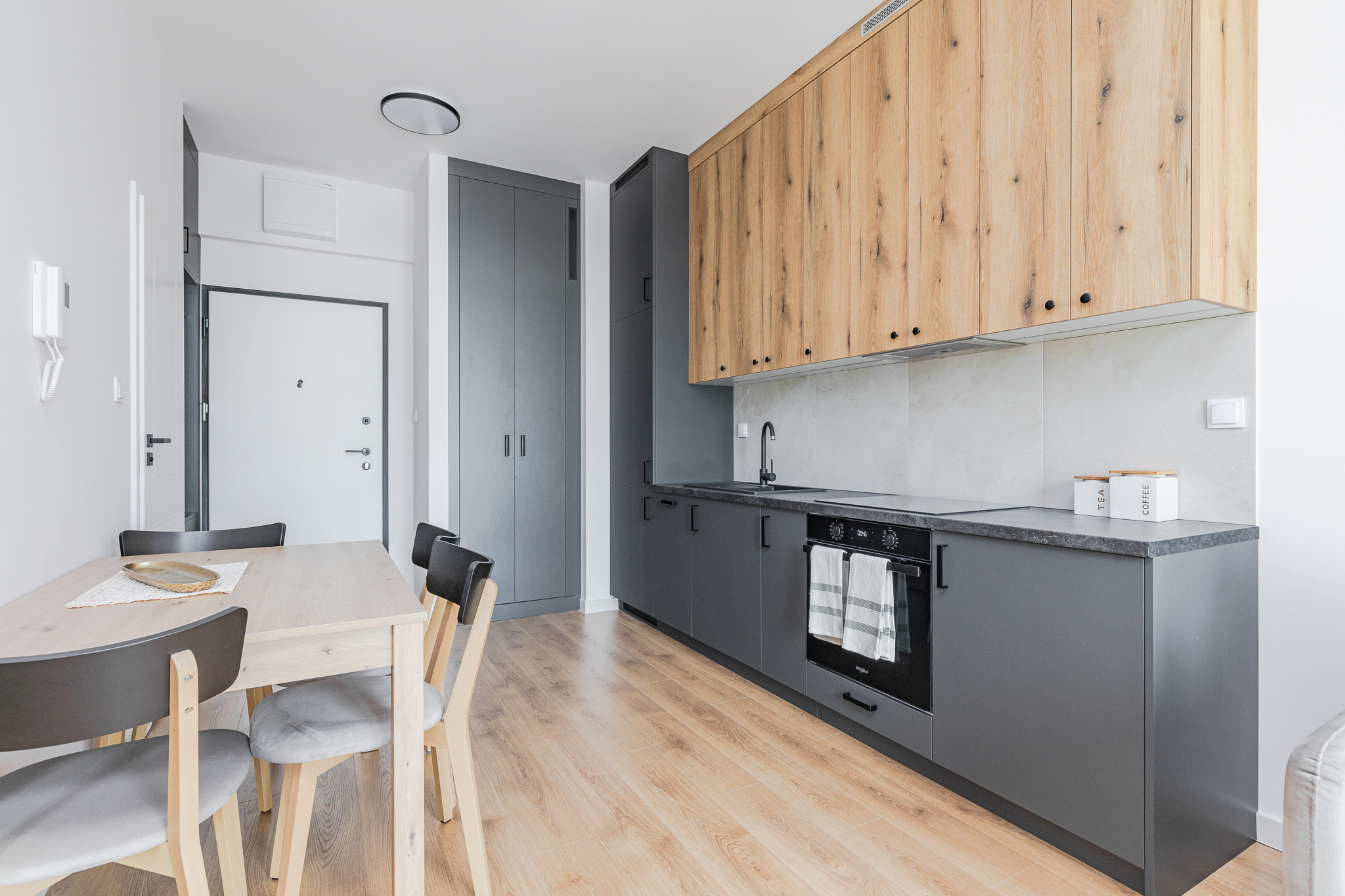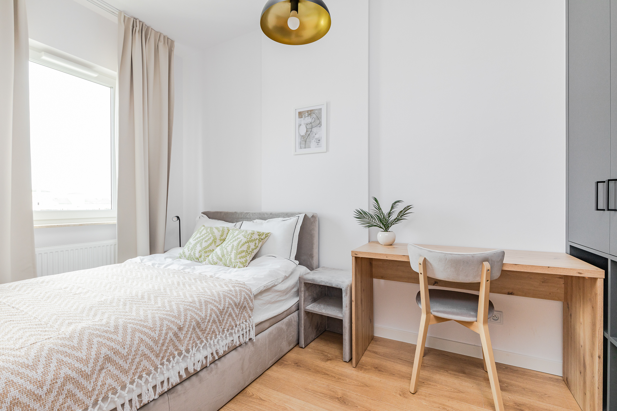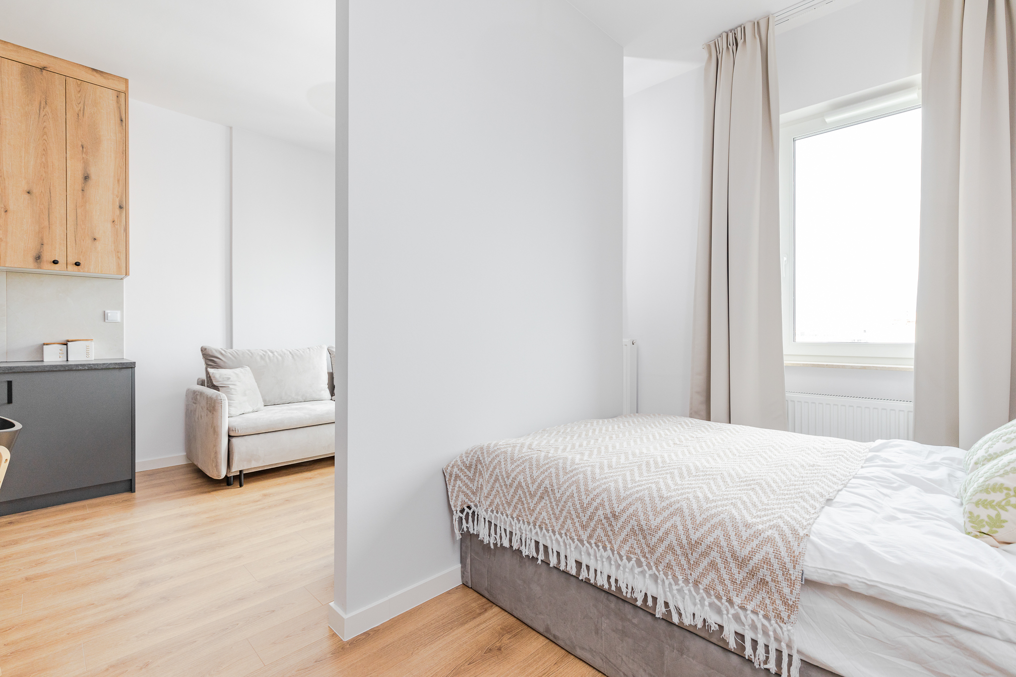 This apartment is located in the Lett Markowska development and offers a modern space to live – perfect for both short and long stays. At 5 Markowska Street, there are 179 fully furnished studios and one-bedroom apartments ready to move in.