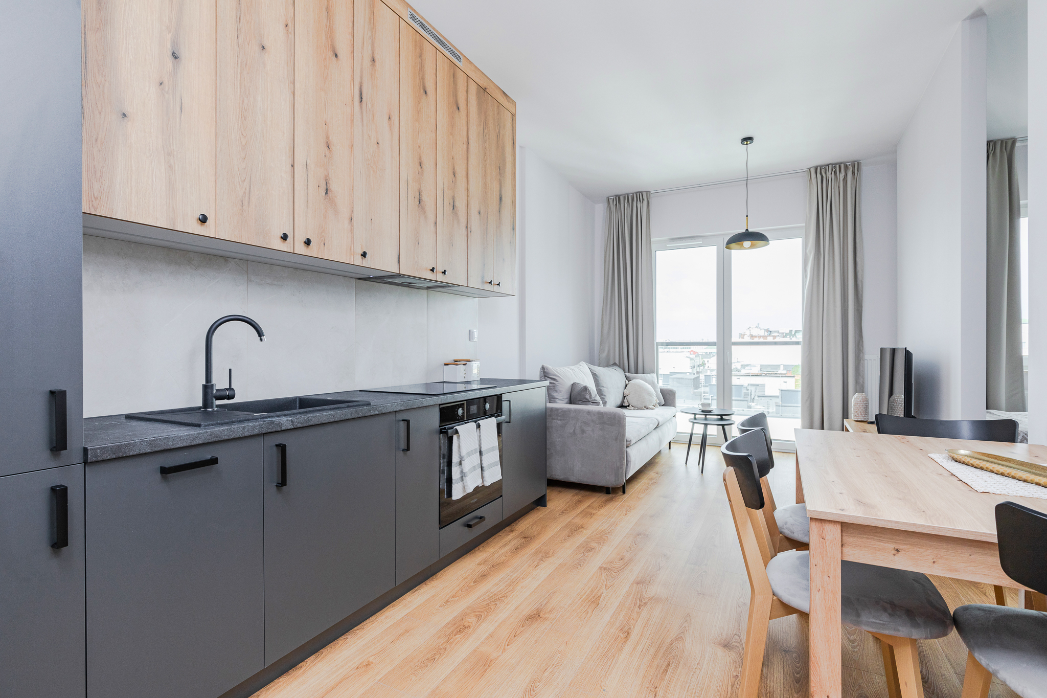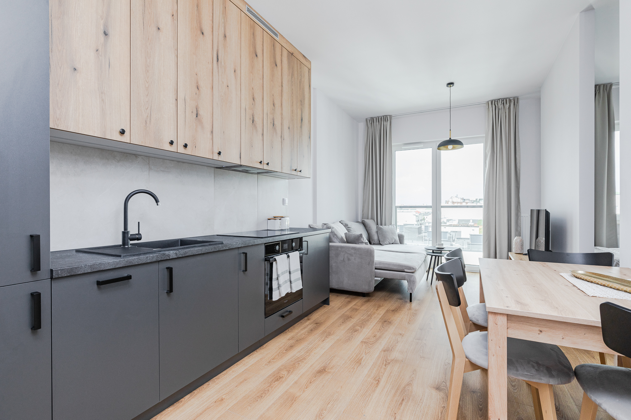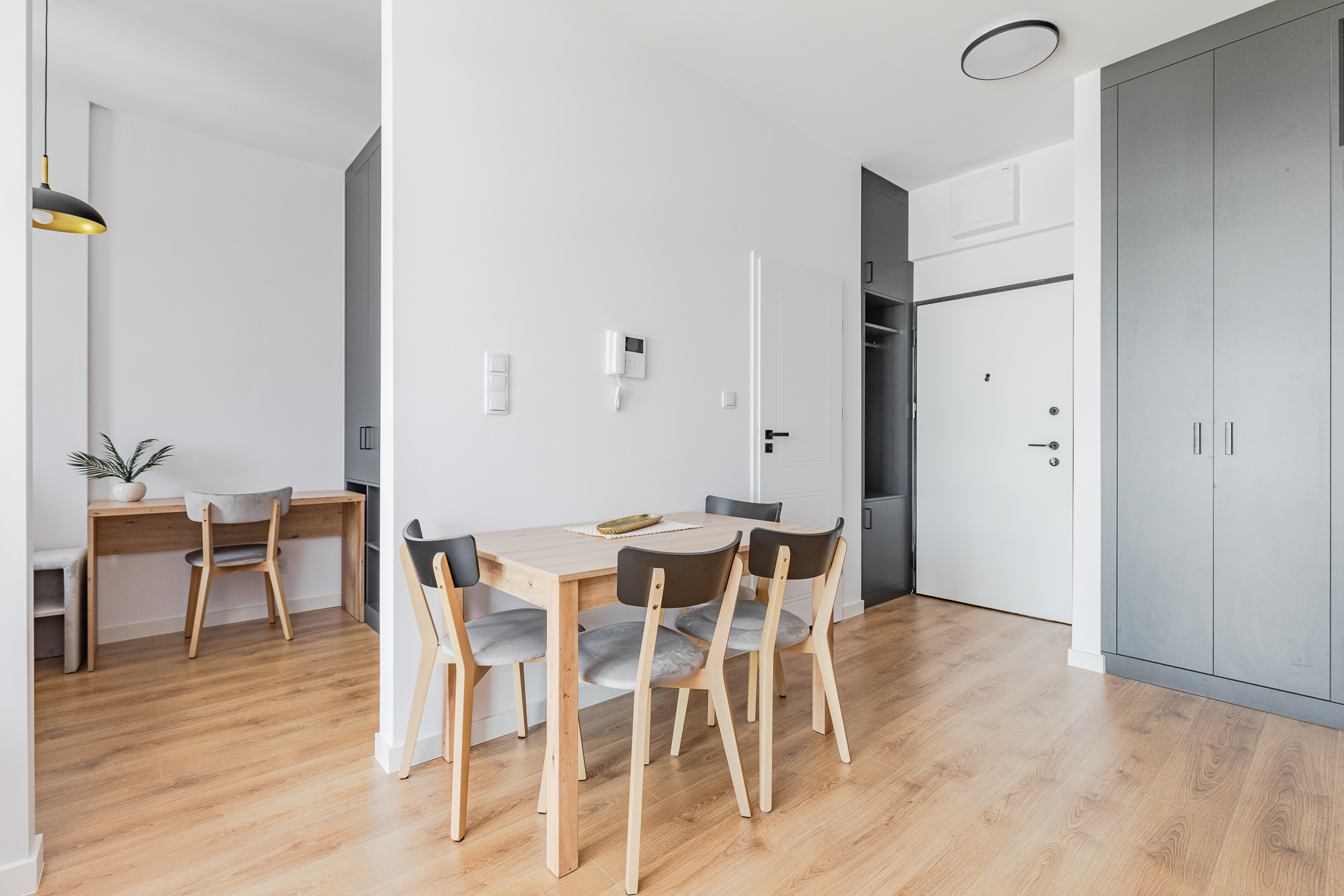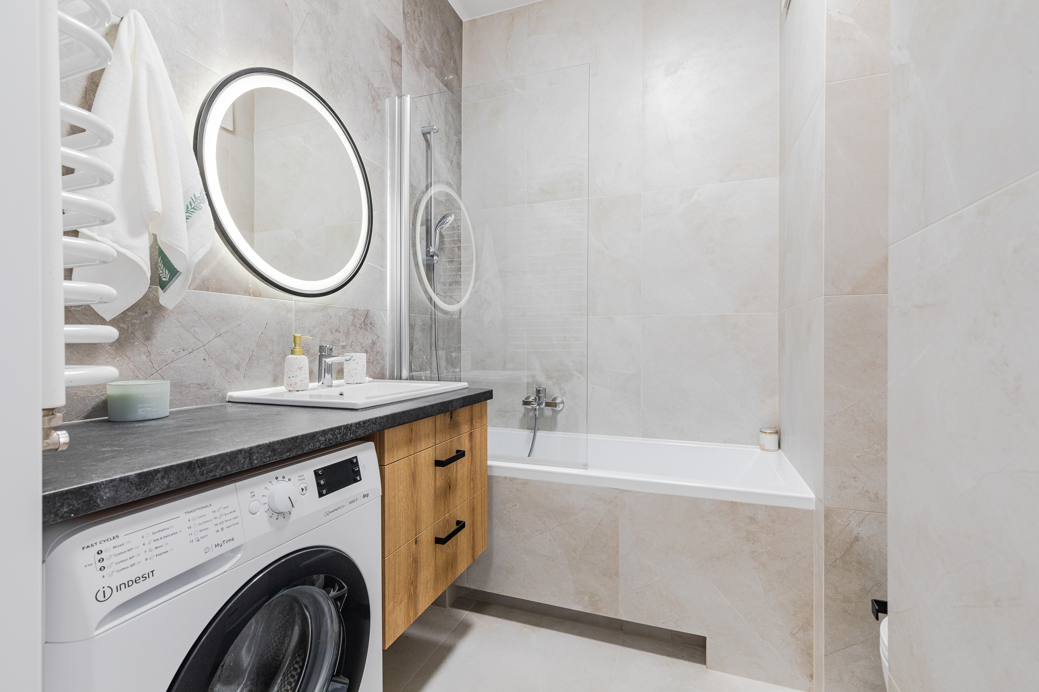This apartment is located in the Lett Markowska development and offers a modern space to live – perfect for both short and long stays. At 5 Markowska Street, there are 179 fully furnished studios and one-bedroom apartments ready to move in.