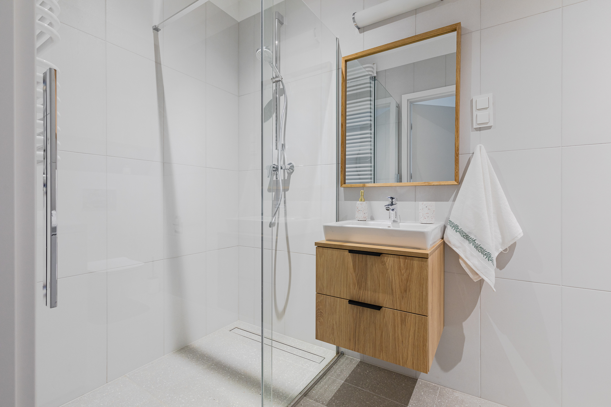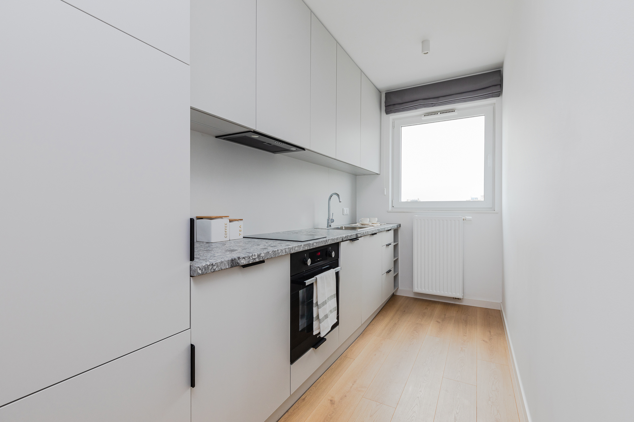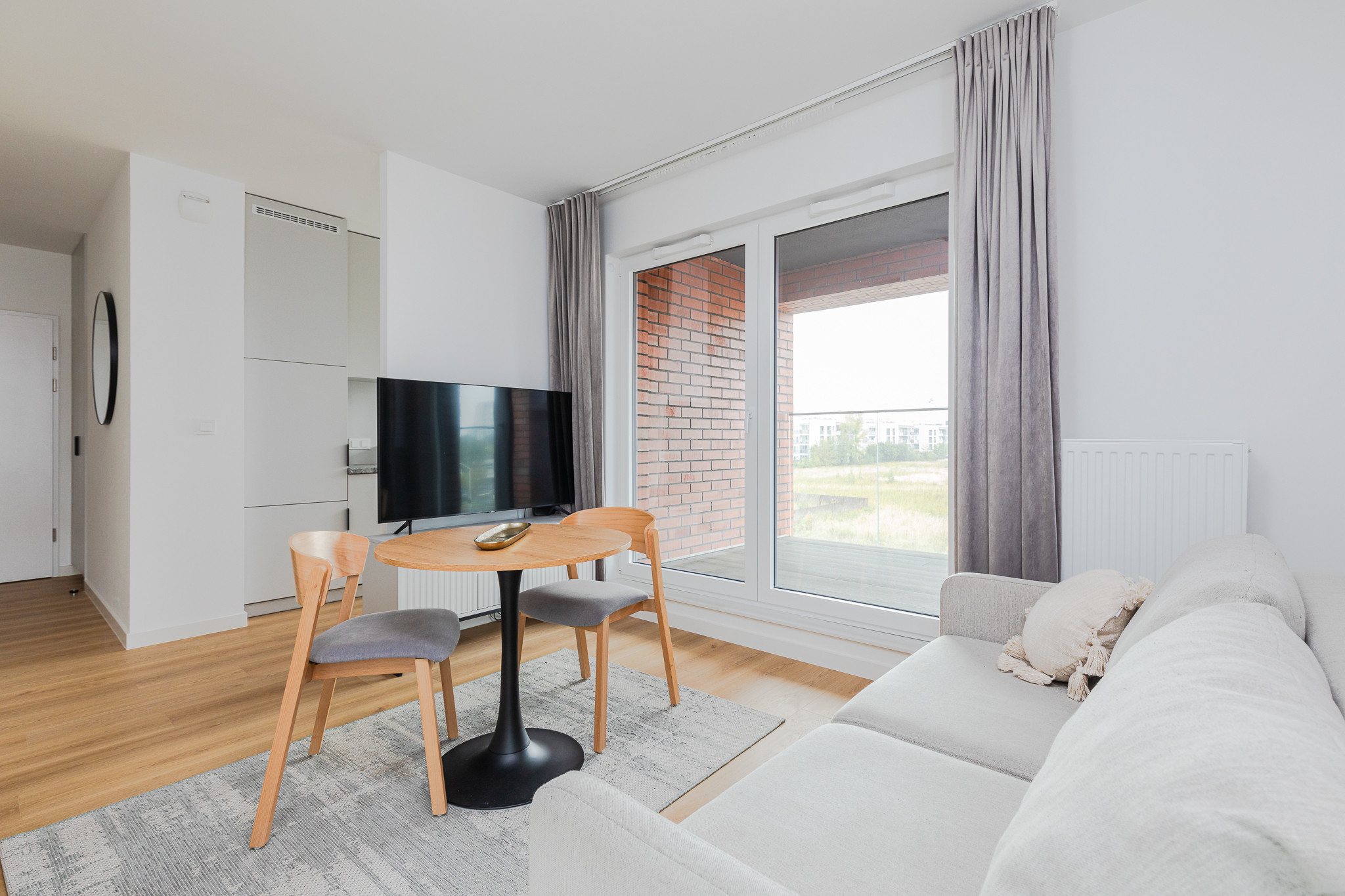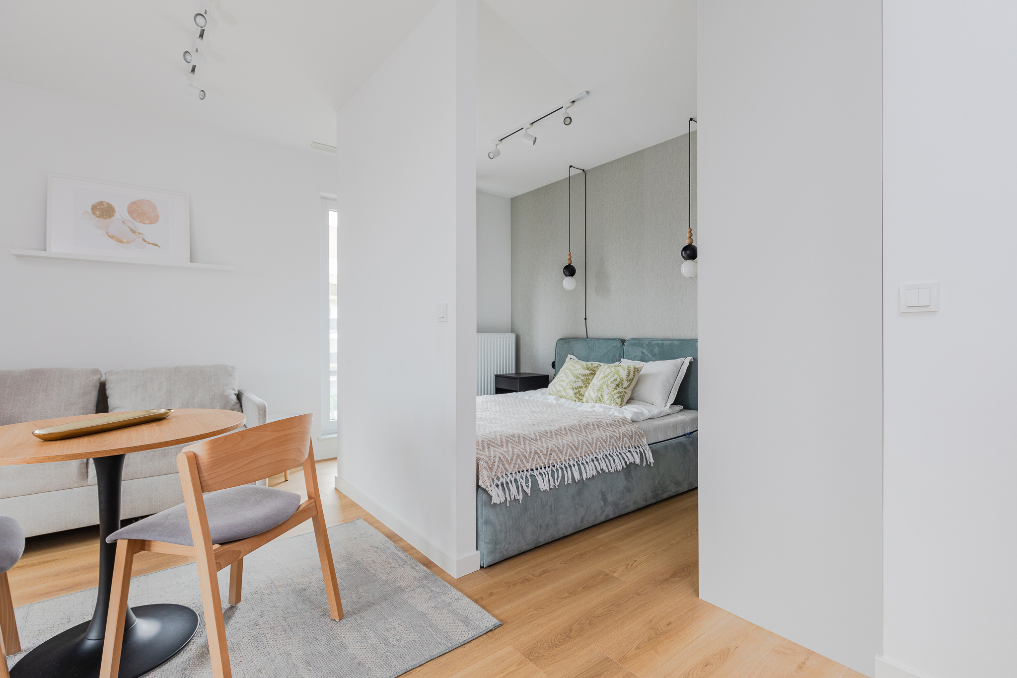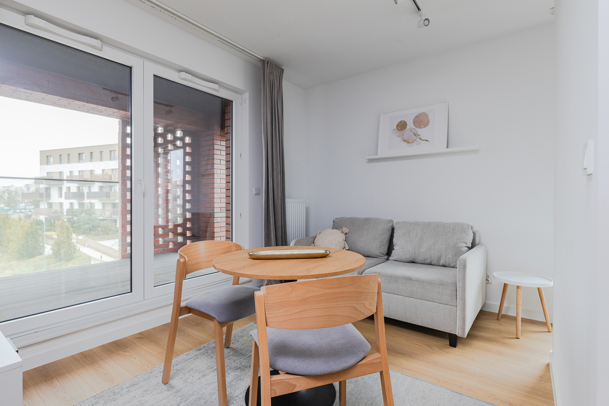 Studio w Lett Lazurowa to idealna propozycja dla singli lub osób szukających kompaktowego, ale wygodnego miejsca do życia. Mieszkanie posiada wyraźnie wydzieloną strefę dzienną i sypialnianą, a duże okna wpuszczają dużo naturalnego światła. W cieplejsze dni do dyspozycji jest również balkon. Kuchnia wyposażona jest w nowoczesne AGD (piekarnik, płyta, lodówka z zamrażarką, zmywarka), a w łazience znajduje się prysznic, pralka i zabudowane szafki. Podłoga z naturalnie wyglądającego laminatu oraz jasna kolorystyka wnętrz zapewniają przytulny klimat.